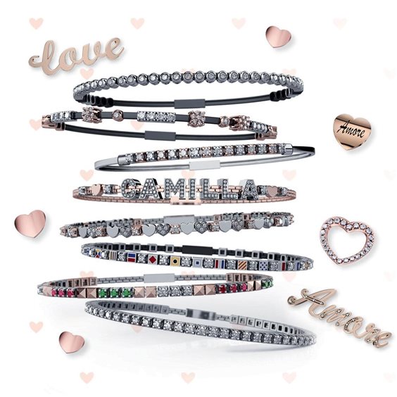 Elemento griffe in oro bianco 18 kt con diamante da 0,02 ct. Charm per bracciale Elements di Donna Oro. Oro 18 kt con Diamante ct. 0.02, dimensioni 4 mm x 4 mm