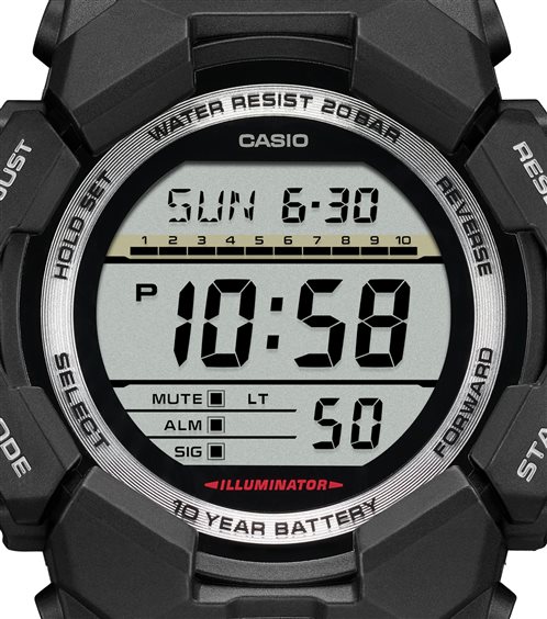 Addio per un po' cambio batteria, con un G-SHOCK con cassa grande e una batteria di 10 anni di cui non ci si dovrà più preoccupare per anni. Il modello GD-010 digitale offre pratiche funzioni come l'ora internazionale e il cronometro, nonché una luce LED ad alta luminosità, facilmente accessibile dall'ampio pulsante sulla parte anteriore della cassa, che garantisce visibilità anche al buio. Realizzato in resina a base biologica e dotato di una batteria di 10 anni, questo G-SHOCK è fantastico se si vuole ridurre l'impatto ambientale. Disponibile in una selezione di combinazioni di colori di stile a base nera per un design accattivante che passa con facilità da ambienti casual a situazioni di lavoro.