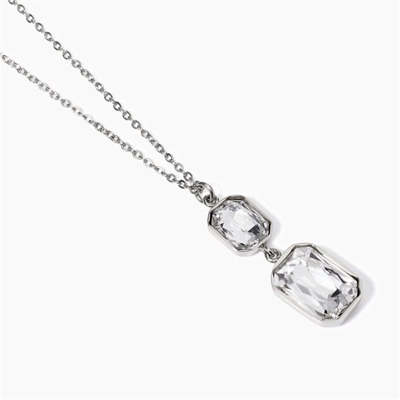 Girocollo regolabile in acciaio con cristalli rettangolari bianchi. • Dimensione catena: 1,5 mm • Dimensione cristalli: 8 x 10 e 10 x 14 mm • Misura regolabile, lunghezza da 40 a 45 cm • Materiale: Acciaio 316L, Cristalli