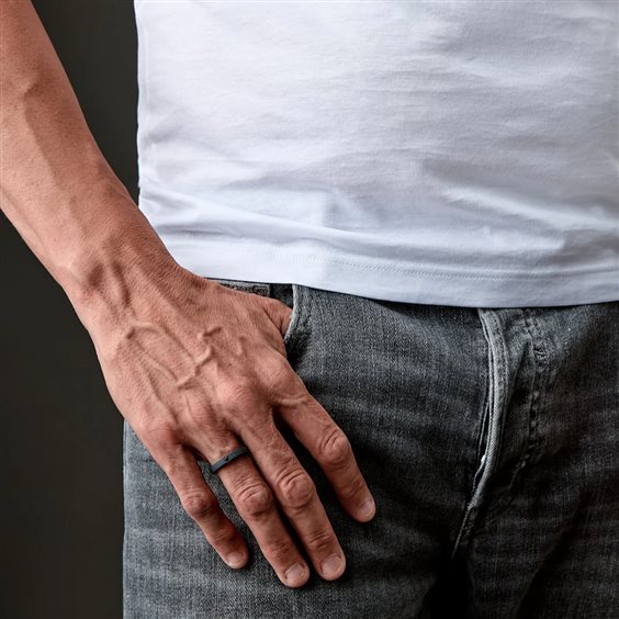 Anello solitario da uomo in titanio nero e diamanti black. La struttura a fede piatta dona a questo solitario in titanio pregio e modernita'. Al suo centro è incastonato un diamante black di caratura pari a 10 punti. All'interno del gambo, testimonial del marchio MANO|J. si trova il diamante black da 1 punto. Confort, pregio e originalità sono le caratteristiche principali di questo moderno solitario.