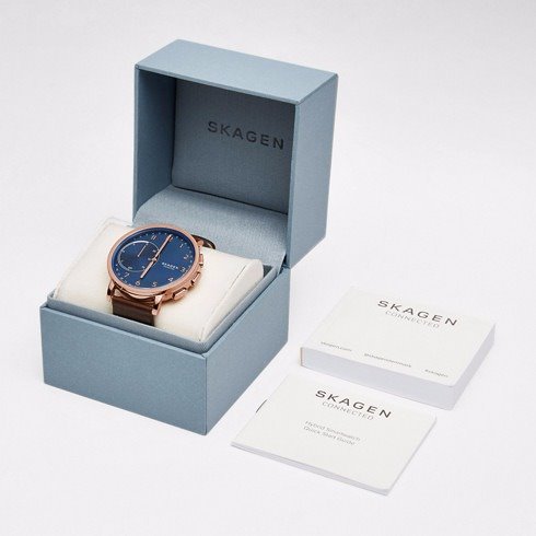 Tracker Attività: Sì Dormire Monitor: Sì Notifiche: Sì Durata della batteria: stimate 4-6 mesi Compatibilità: dispositivi Android 4.4+, iOS 8+ iPhone 5 + Connettività: Bluetooth intelligente abilitato / 4.1 Low Energy, Wi-Fi 802.11 b / g / n Il Hagen Connected SmartWatch ibrida combina una tecnologia innovativa con un design classico. Le caratteristiche includono il tempo e la regolazione automatica della data, l'attività e il monitoraggio obiettivo, il monitoraggio del sonno, notifiche e-mail e di testo filtrati, funzione dual-time, l'allarme e la tecnologia LINK Skagen, che permette a chi lo indossa di scattare una foto, controllare la loro musica e altro ancora, il tutto con la semplice pressione di un pulsante. Hagen collegato è compatibile con i telefoni Android ™ e iPhone® e sincronizza in modalità wireless al app Skagen, dove è possibile visualizzare i dati e gestire le impostazioni. L'orologio funziona con una batteria standard a bottone con un quattro a durata della batteria di sei mesi, in modo che non ha bisogno di essere ricaricata. E la costruzione di sgancio rapido pin rende facile scambiare il nastro di acciaio a maglia con cuoio altri 20mm, in acciaio a maglia, silicone o cinghie di nylon. Fornito con un cinturino di ricambio in omaggio.