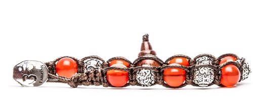 Bracciale originale Tamashii 'Ruota della preghiera' realizzato con pietre naturali AGATA ROSSO PASSIONE. Il bracciale è arricchito da ruote in argento 925‰ (a barilotto o a sfera) incise con il mantra “Om Mani Padme Hūm” del Buddha della compassione Cenresig. Unisex e taglia unica (il bracciale è predisposto per adattarsi a qualsiasi diametro di polso).