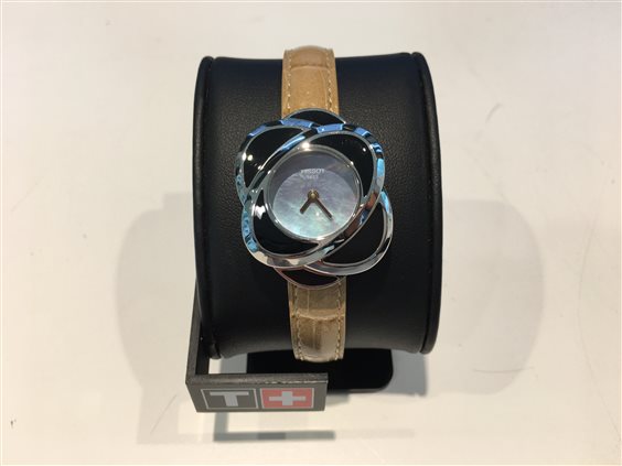 Orologio Solo Tempo. Cassa in acciaio 316l lucido e smalto nero, forma ovale 33x22,5 mm. spessore 8,3 mm. ansa 12 mm. modificabile a piacere ( cassa a 3 strati, i 2 superiori 'petali' ruotandoli formano varie figure floreali). Movimento Quarzo Swisse Made : ore e minuti. Vetro zaffiro. Quadrante madreperla. Cinturino regolabile internamente in pelle, in tessuto nero parte esterna, chiusura deployante. Impermeabile 30 metri. Peso 30,2 grammi.