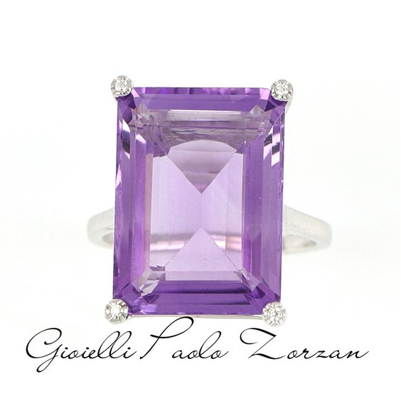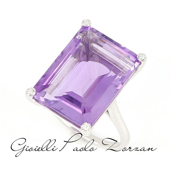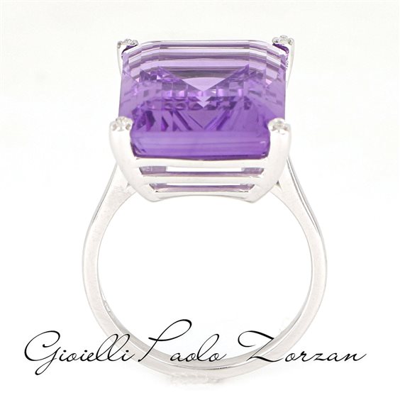 Anello oro 18 Kt Gemma Quarzo Varietà Ametista Naturale Peso ct 13.71 Diamanti Naturali Peso ct 0.03 Purezza SI Colore F