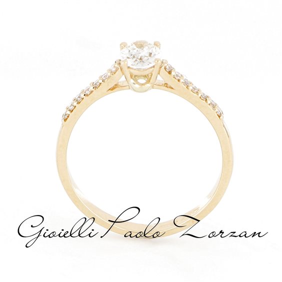 Anello Oro Giallo 18 Kt Peso gr. 2.40 Diamante Naturale GIA Peso ct 0.51 Colore G Purezza SI1 Laterali Diamanti Naturali Peso ct. 0.13 Colore G Purezza SI Anello Solitario in oro giallo 18 kt con diamante naturale taglio ovale ct 0.51 Certificato GIA colore G purezza SI1, con diamanti laterali naturali ct. 0.13 colore G, purezza SI.