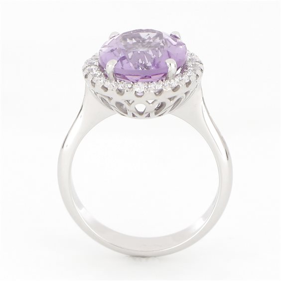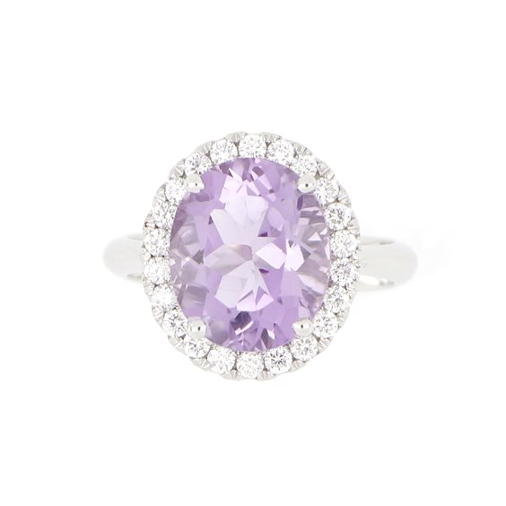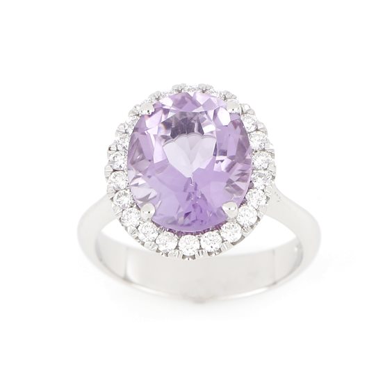 Anello Oro Bianco 18 Kt Peso Totale gr 5.80 Ametista Naturale Peso ct. 4.58 Misure 10.0 x 12.0 mm Diamanti Naturali Peso ct 0.41 Colore F Purezza SI