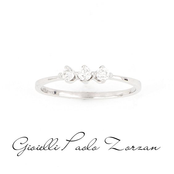 Anello trilogy in oro bianco 18 kt con 3 diamanti naturali taglio brillante rotondo ct 0.18 colore F purezza SI Anello Oro 18 kt Diamante naturale Peso ct. 0.18 Taglio Brillante Colore F Purezza SI