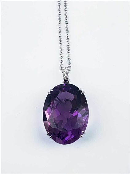 Collana in oro bianco 18 kt cm 42 Ametista naturale ct 33.52 Misure ametista 2, 50 x 2 ,00 cm Diamanti ct 0.08 F SI